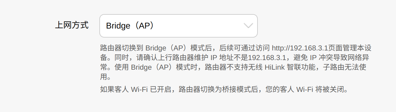 上网方式设置成AP模式